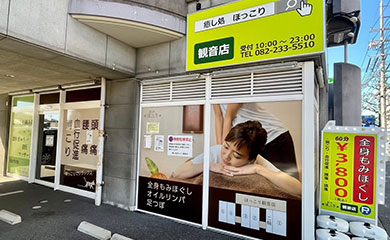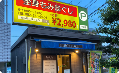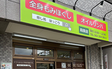事業所名 癒し処 ほっこり 段原店 営業時間 朝10時〜夜22時(夜21時まで受付) 所在地 広島市南区段原南2丁目8-2